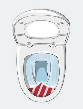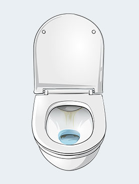Beobachten Sie während des Spülens, wie sich das Spülwasser in der Toiletten-Schüssel verteilt.